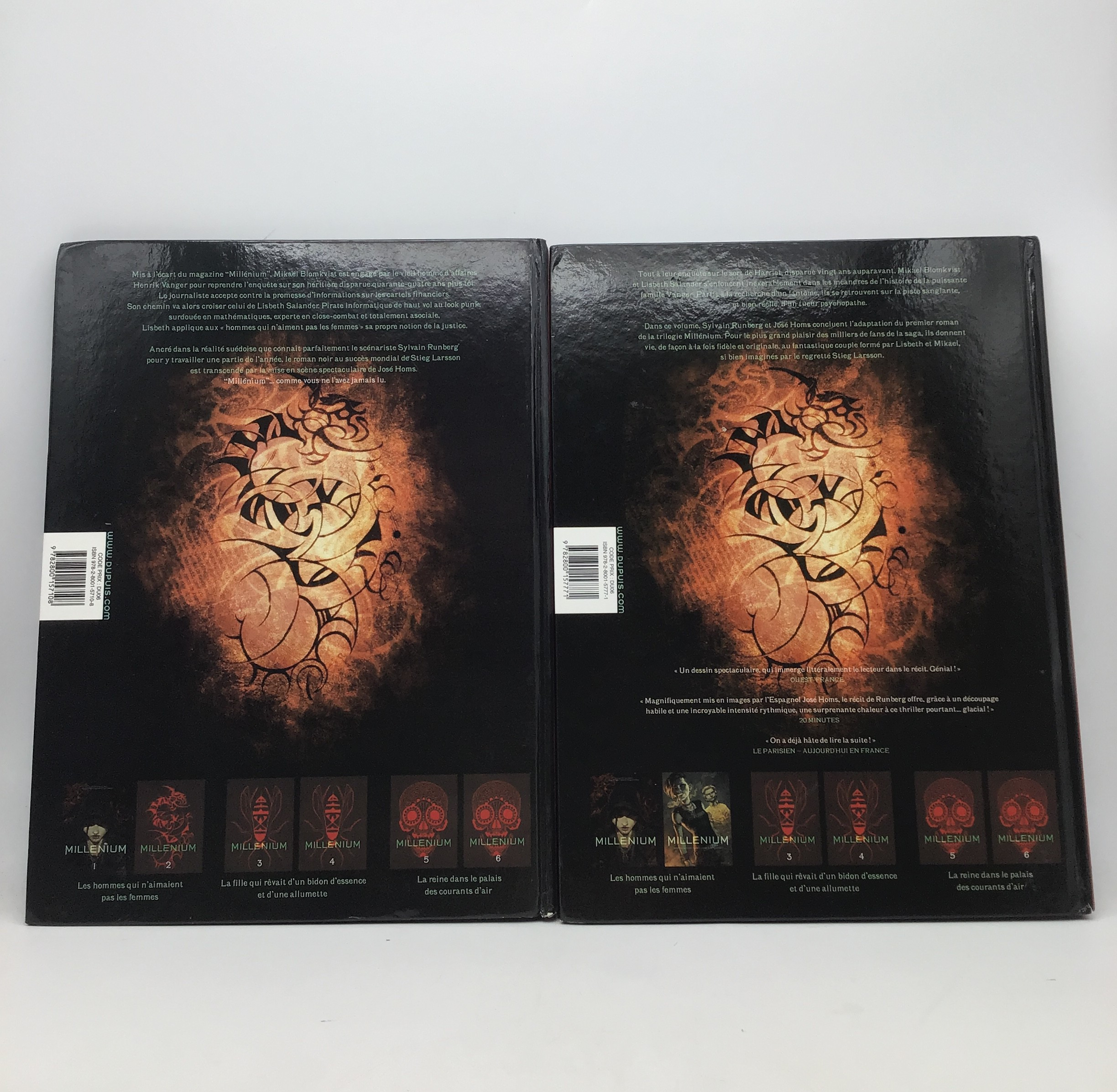 Découvrez le premier et le deuxième tome de la célèbre série Millenium, écrits par Runberg, Homs et Stieg Larsson. Publiés en 2013 par les Éditions Dupuis, ces deux ouvrages au format grand vous plongeront dans l'univers captivant et intrigant des enquêtes de Mikael Blomkvist et Lisbeth Salander.