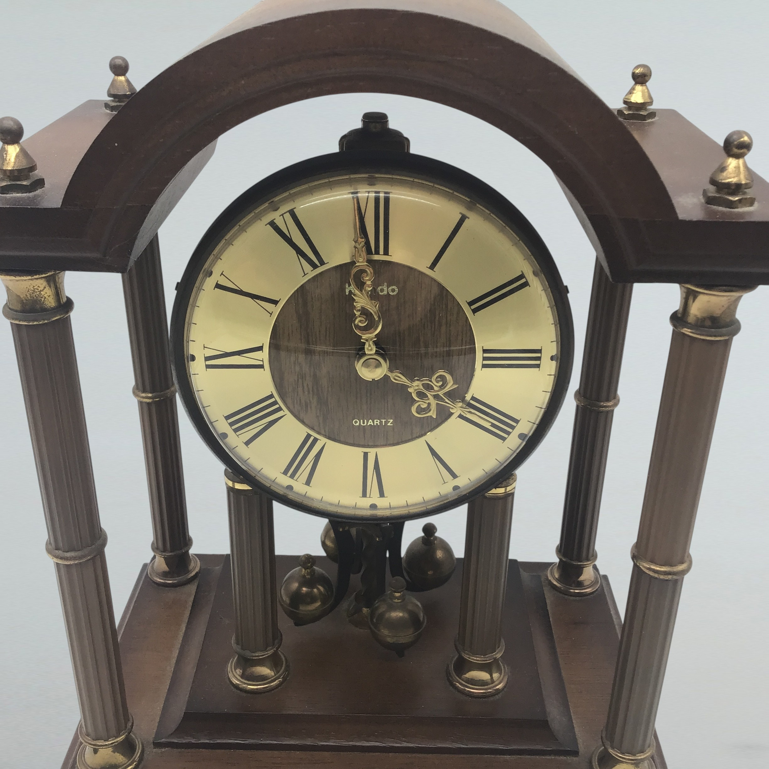 Découvrez cette magnifique pendule en bois Kundo, mesurant 23 cm de hauteur, 11 cm de largeur et 18 cm de longueur. Malgré quelques signes d'usure qui témoignent de son ancienneté, elle fonctionne parfaitement et apportera une touche d'élégance à votre intérieur. Son design vintage séduira les amateurs de décoration intemporelle. Idéale pour les passionnés de belles horloges, elle saura trouver sa place sur un bureau, une étagère ou dans un salon. Ne manquez pas l'occasion de lui donner une nouvelle vie !